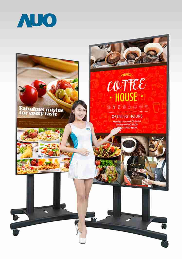 本次领先业界(*) 推出 85寸 UHD 4K 户外型超大显示器,,,具备 2500 nits 超高亮度和连续开机操作的稳定性能,,在阳光直射环境下影像仍然鲜明清晰,,,,适合户外候车亭及高级精品店等广告播放使用。。。。55寸 Full HD 拼接墙显示器的极窄边框技术,,,让相邻屏幕拼接后的边框宽度仅 1.8mm,,,能因应各种空间灵活设计为不规则拼接墙,,搭配色彩及亮度调校技术呈现完美的画面均匀度,,打造独一无二的品牌形象广告。。。本次也将展出一系列的超宽型公共讯息显示器,,尺寸从 28.6寸至 42寸,,,,皆具备高解析、、、高亮度、、高信赖性等特色,,可配置于半户外环境,,作为交通信息显示器提供旅客实时候车信息及广告讯息、、于零售商店展示超宽型广告,,或打造成智能商店货架以互动感应设计呈现商品讯息,,增加消费者购物乐趣。。。。