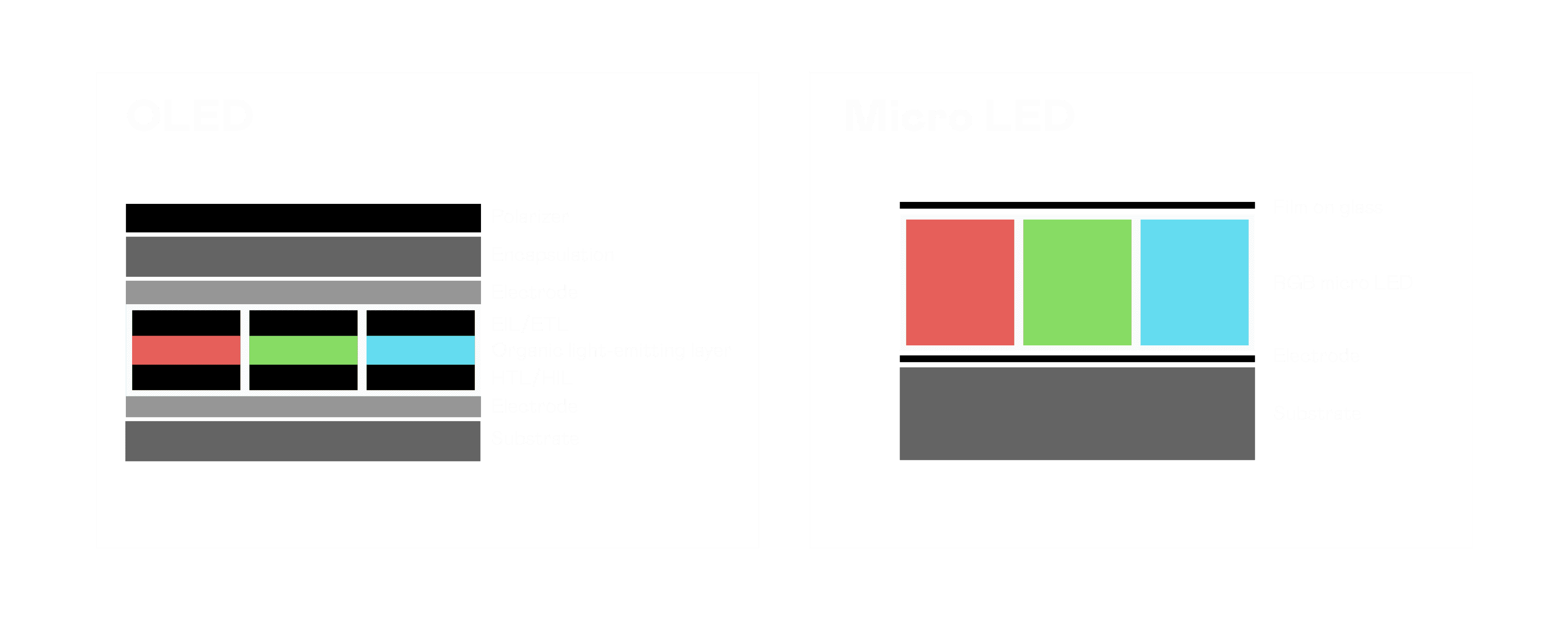 以 LED 做为显示画素,,,可让 LED 的发光效率发挥到极致,,,从而让显示器具备优异的亮度表现,,,不论是在户外或室内,,均具备出众的显示效果。。。同时,,与使用有机材料的 OLED 相比,,,,LED 具备更稳定、、寿命更长的特性,,不仅不会有画面烙印问题,,,而且更不容易出现故障、、、坏点。。。。
