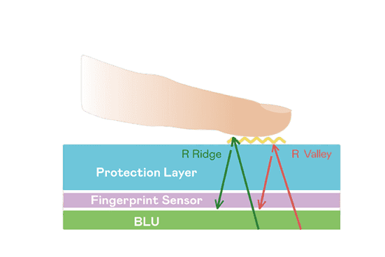 TFT 指纹扫描感测技术利用薄膜电晶体 (TFT) 当作光感测元件,,,,藉由非晶硅 (a-Si) 与低温多晶硅(LTPS)既有光电转换特性对不同波段光源进行吸收,,使感测 IC 读取阵列感测元件的光漏电差异,,,转换成数位灰阶影像。。。